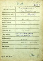 Karta wagonu Górnośląskich Kolei Wąskotorowych |