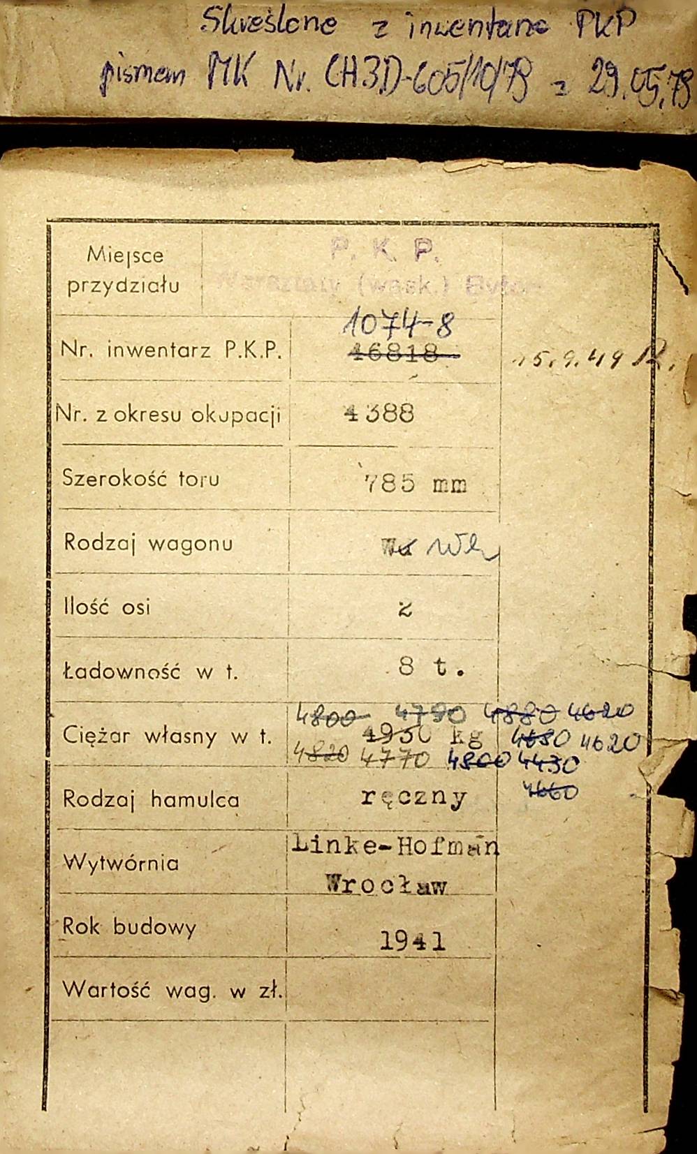 Karta wagonu Górnośląskich Kolei Wąskotorowych |