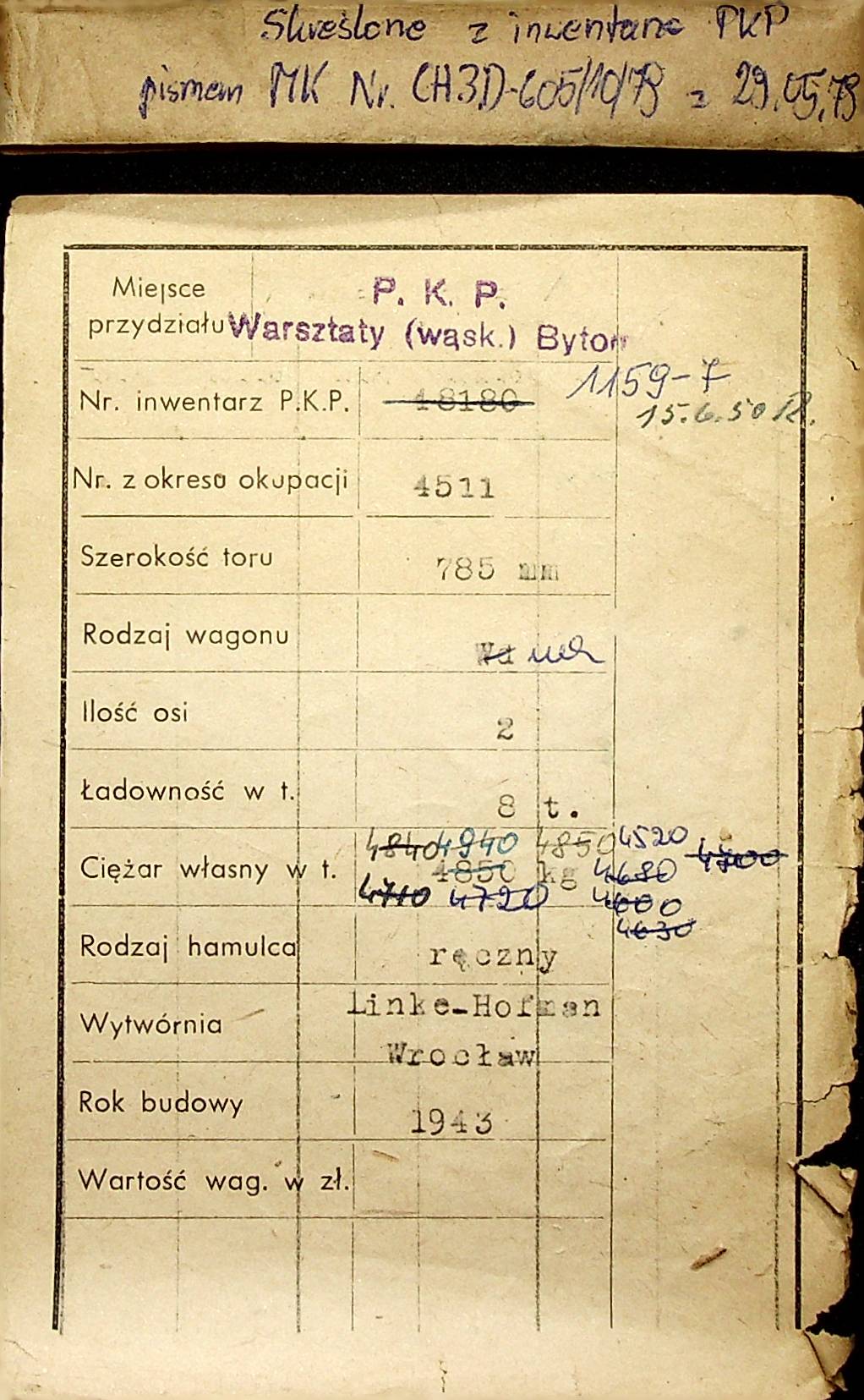 Karta wagonu Górnośląskich Kolei Wąskotorowych |
