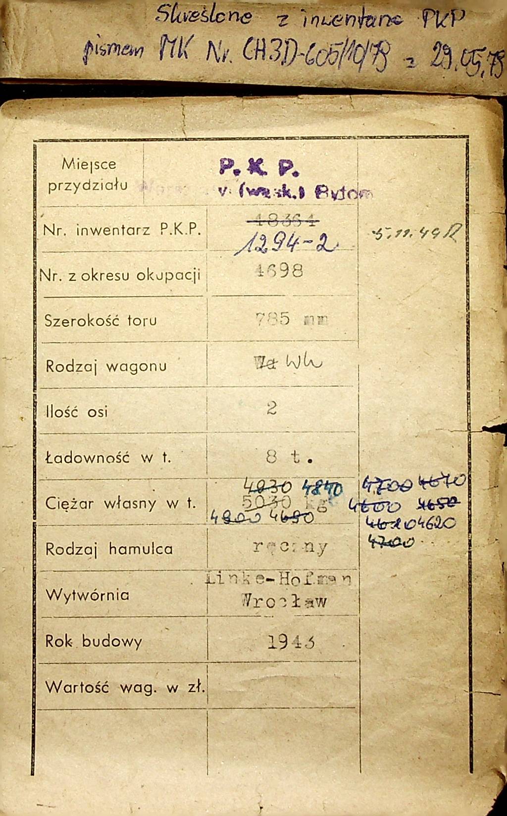 Karta wagonu Górnośląskich Kolei Wąskotorowych |