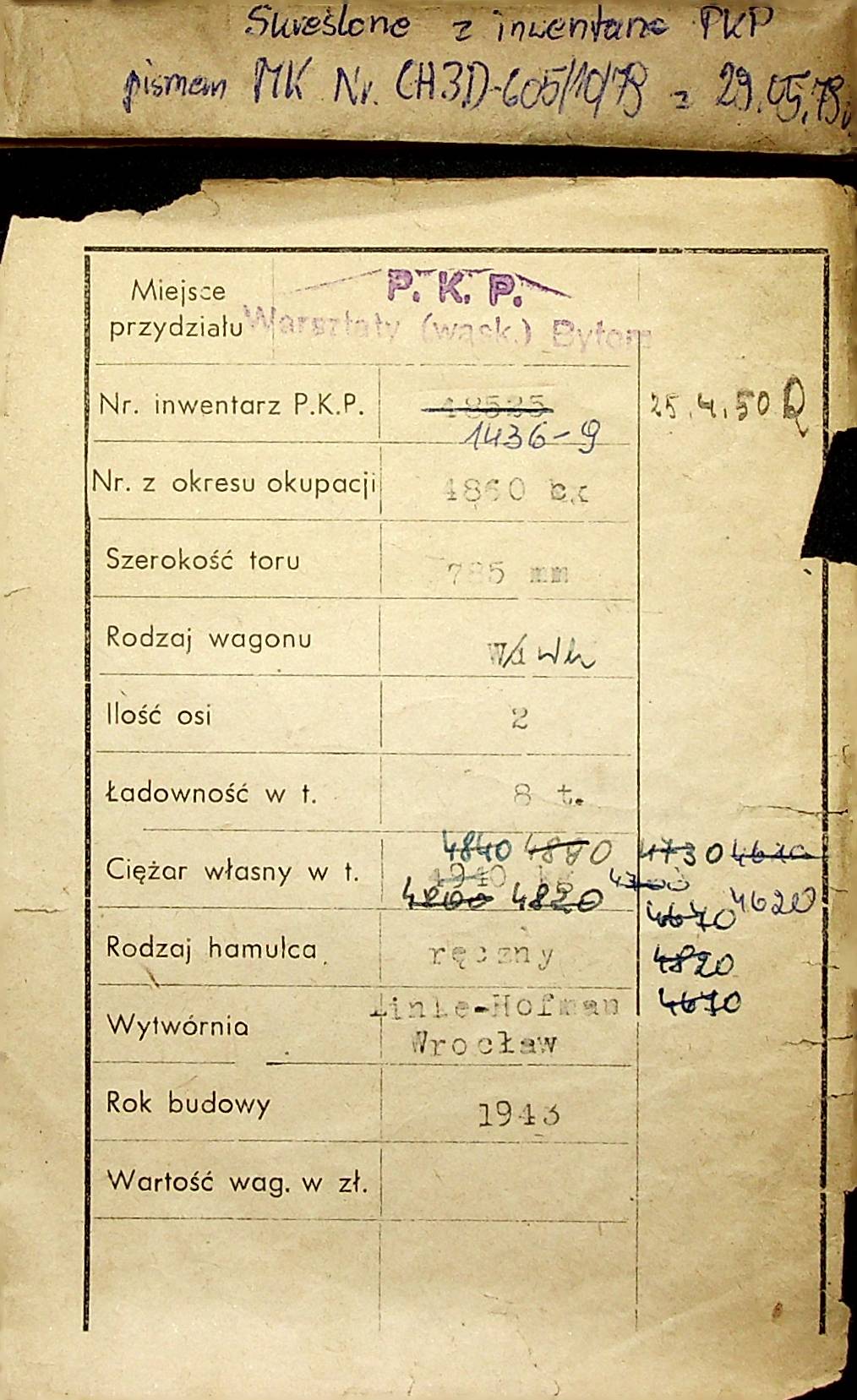Karta wagonu Górnośląskich Kolei Wąskotorowych |
