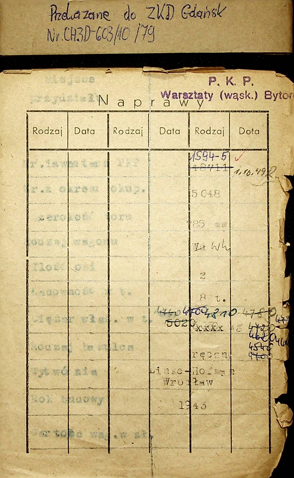Karta wagonu Górnośląskich Kolei Wąskotorowych |