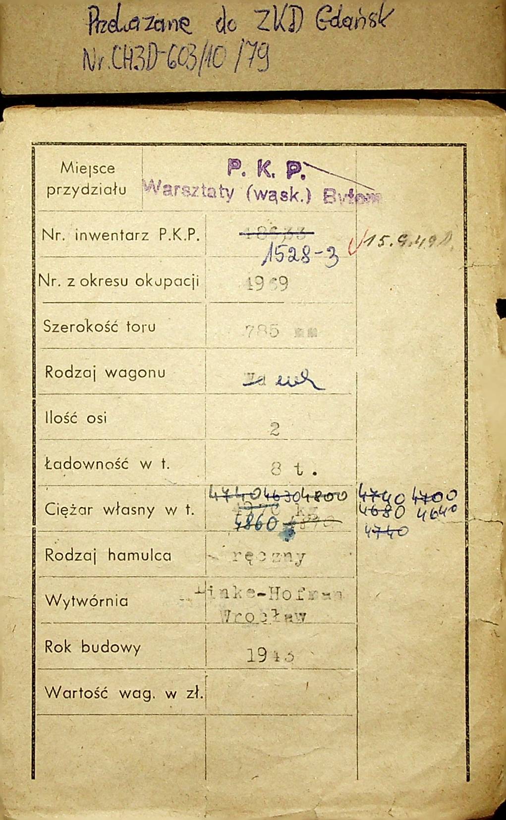 Karta wagonu Górnośląskich Kolei Wąskotorowych |