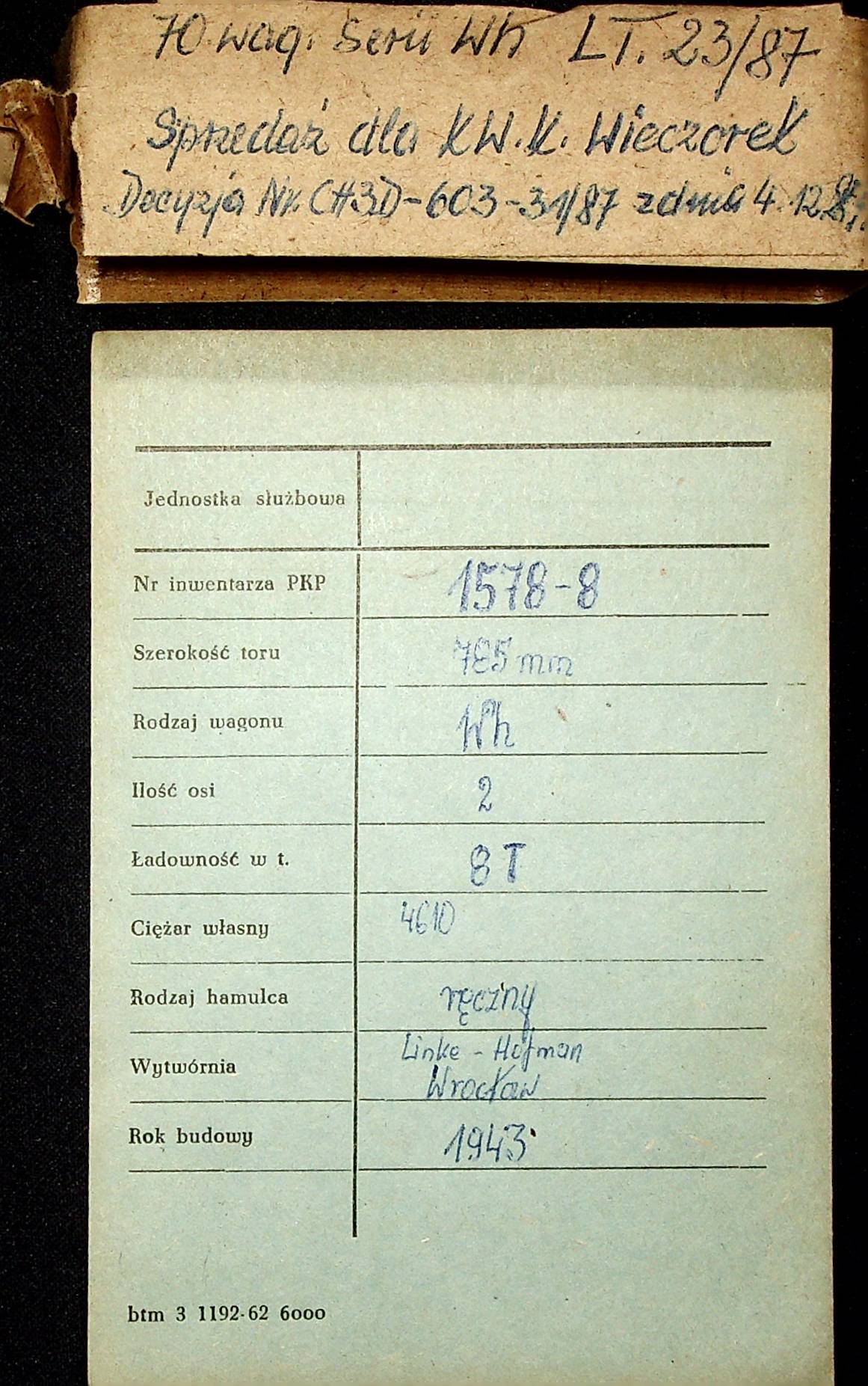 Karta wagonu Górnośląskich Kolei Wąskotorowych |