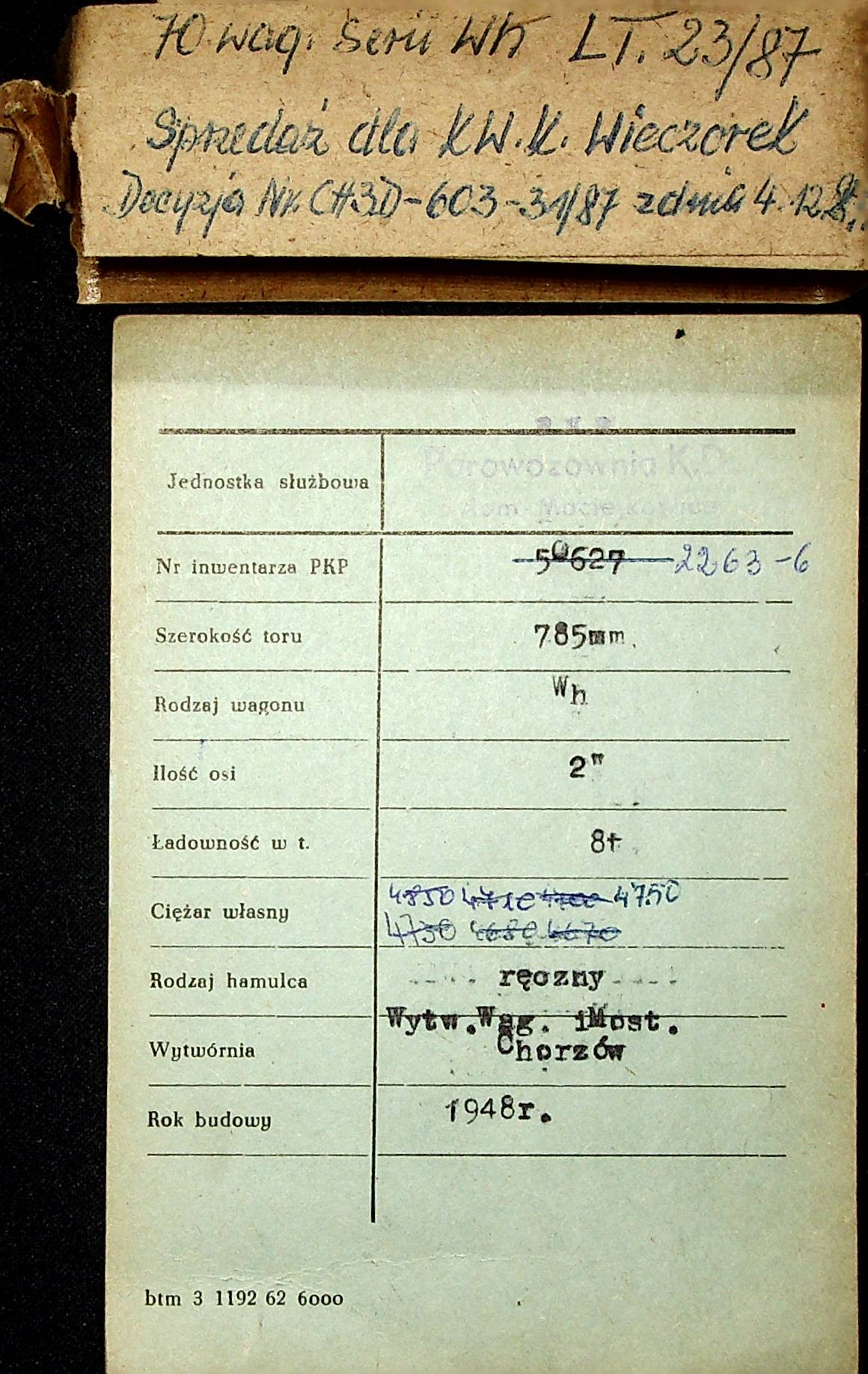 Karta wagonu Górnośląskich Kolei Wąskotorowych |