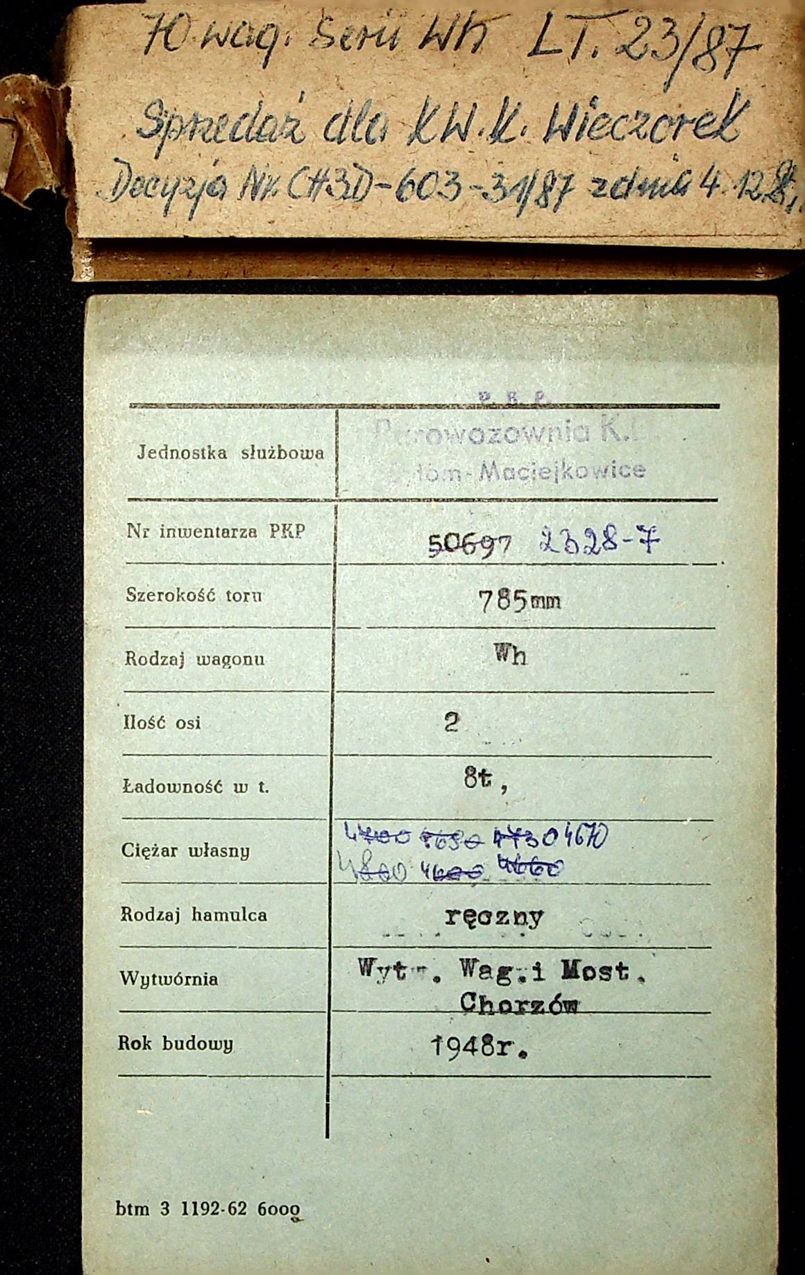 Karta wagonu Górnośląskich Kolei Wąskotorowych |