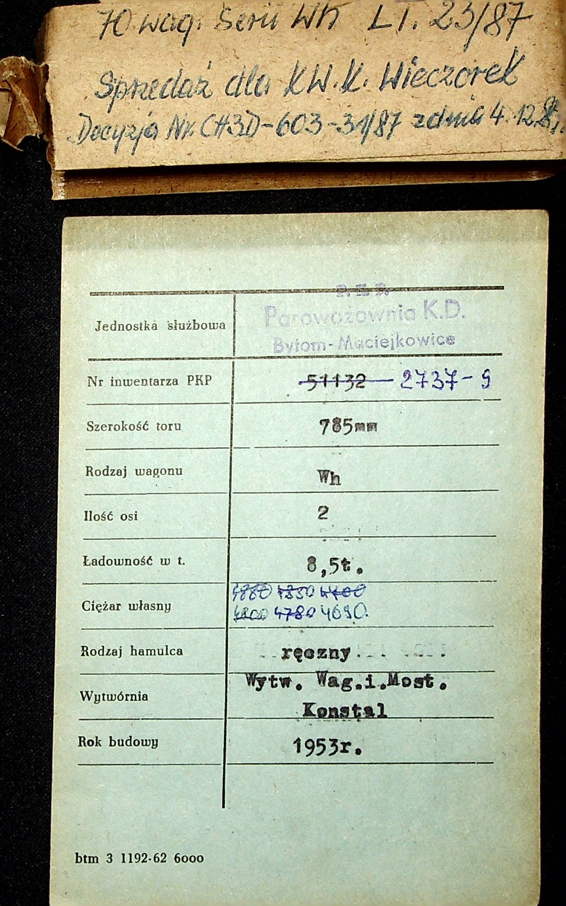 Karta wagonu Górnośląskich Kolei Wąskotorowych |