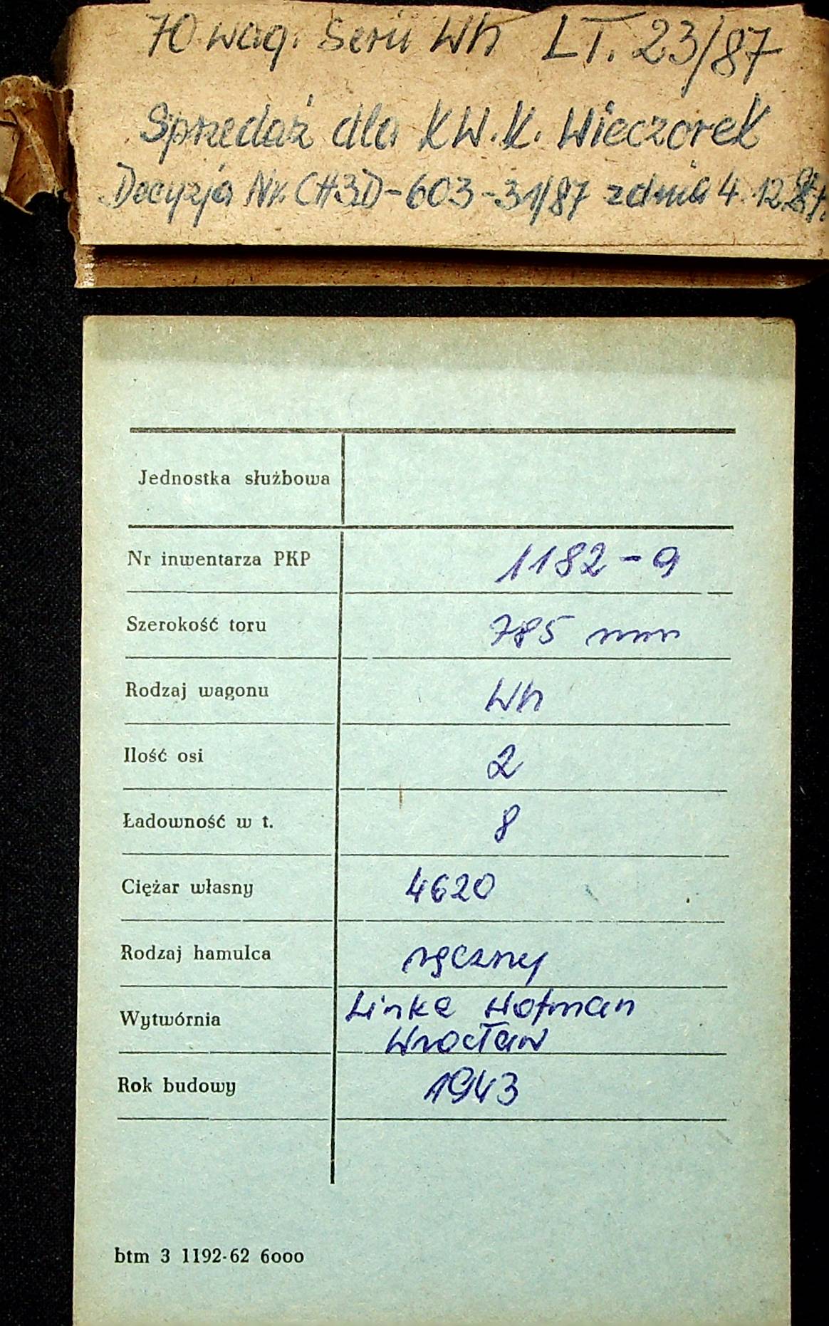 Karta wagonu Górnośląskich Kolei Wąskotorowych |