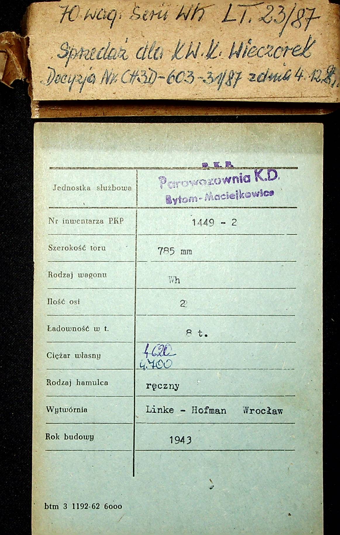 Karta wagonu Górnośląskich Kolei Wąskotorowych |