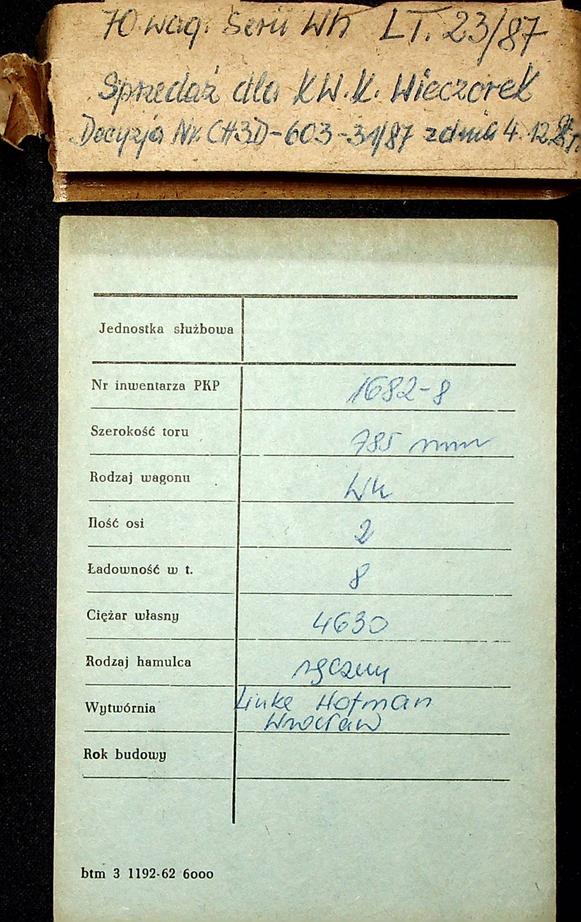 Karta wagonu Górnośląskich Kolei Wąskotorowych |
