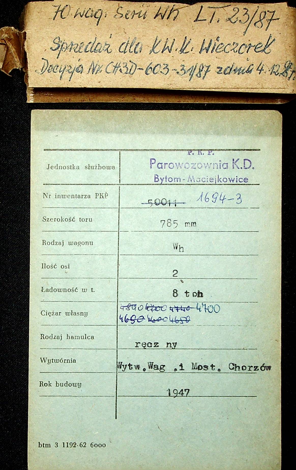 Karta wagonu Górnośląskich Kolei Wąskotorowych |