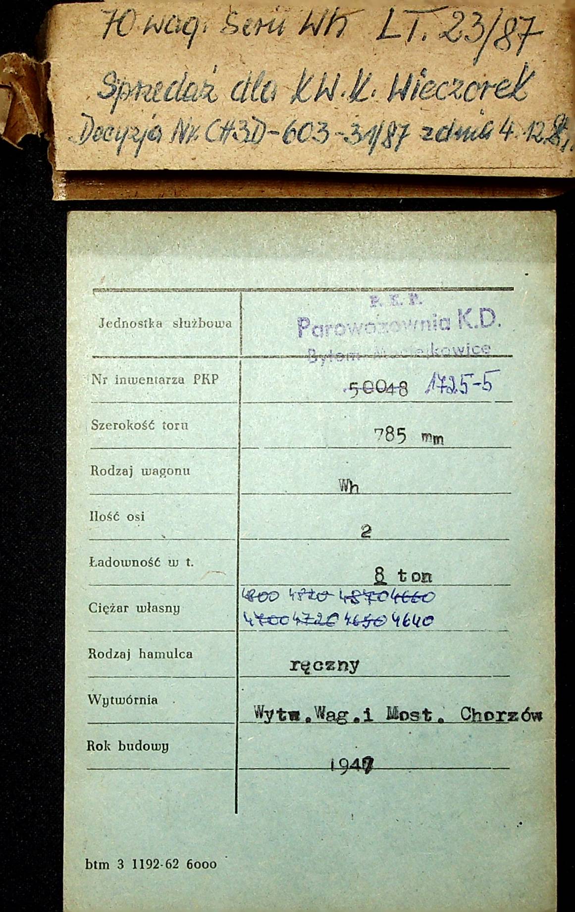 Karta wagonu Górnośląskich Kolei Wąskotorowych |