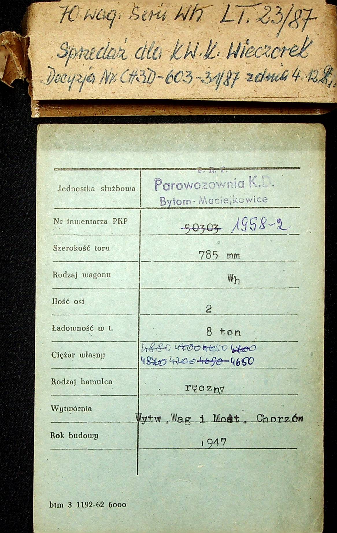 Karta wagonu Górnośląskich Kolei Wąskotorowych |