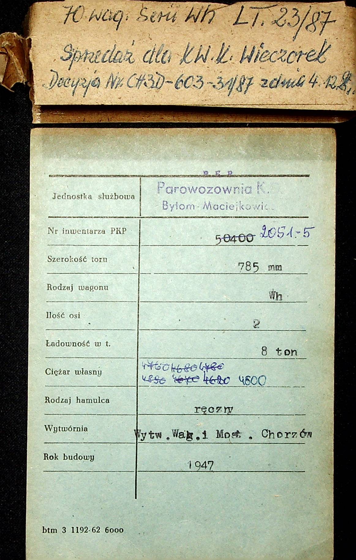Karta wagonu Górnośląskich Kolei Wąskotorowych |
