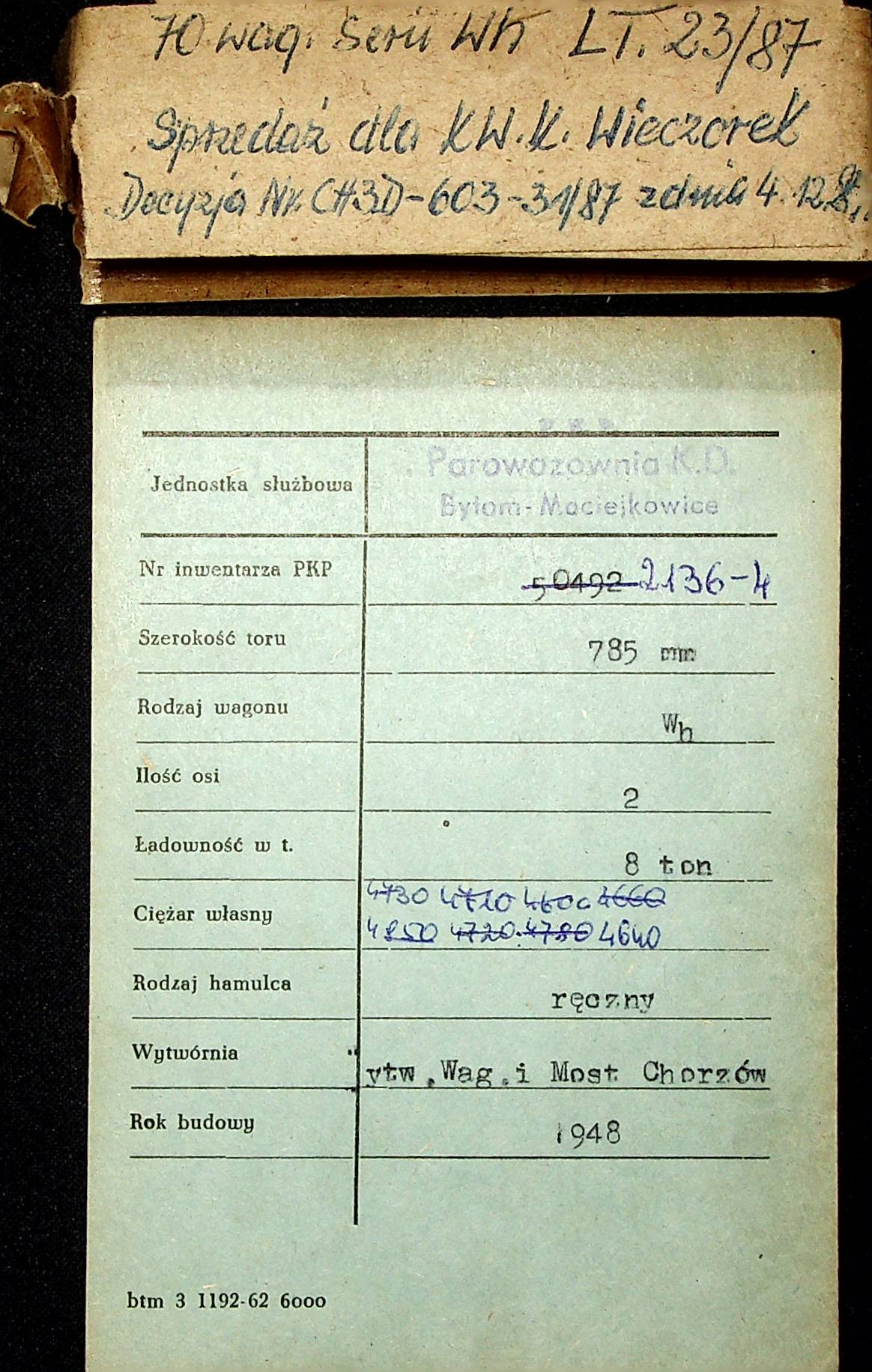 Karta wagonu Górnośląskich Kolei Wąskotorowych |