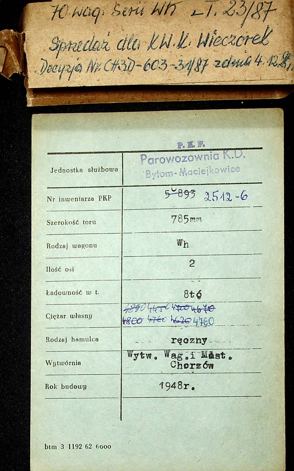Karta wagonu Górnośląskich Kolei Wąskotorowych |