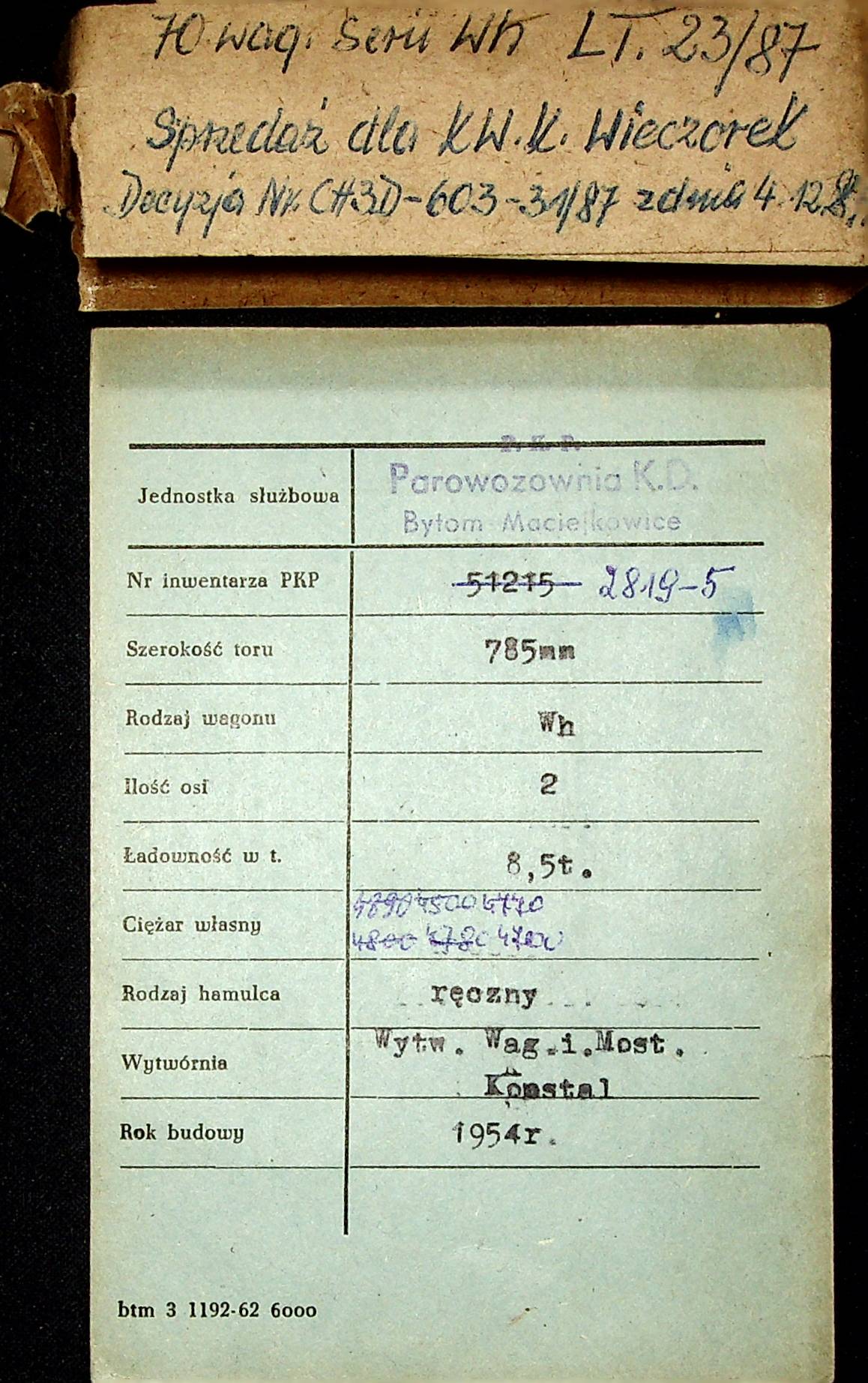 Karta wagonu Górnośląskich Kolei Wąskotorowych |