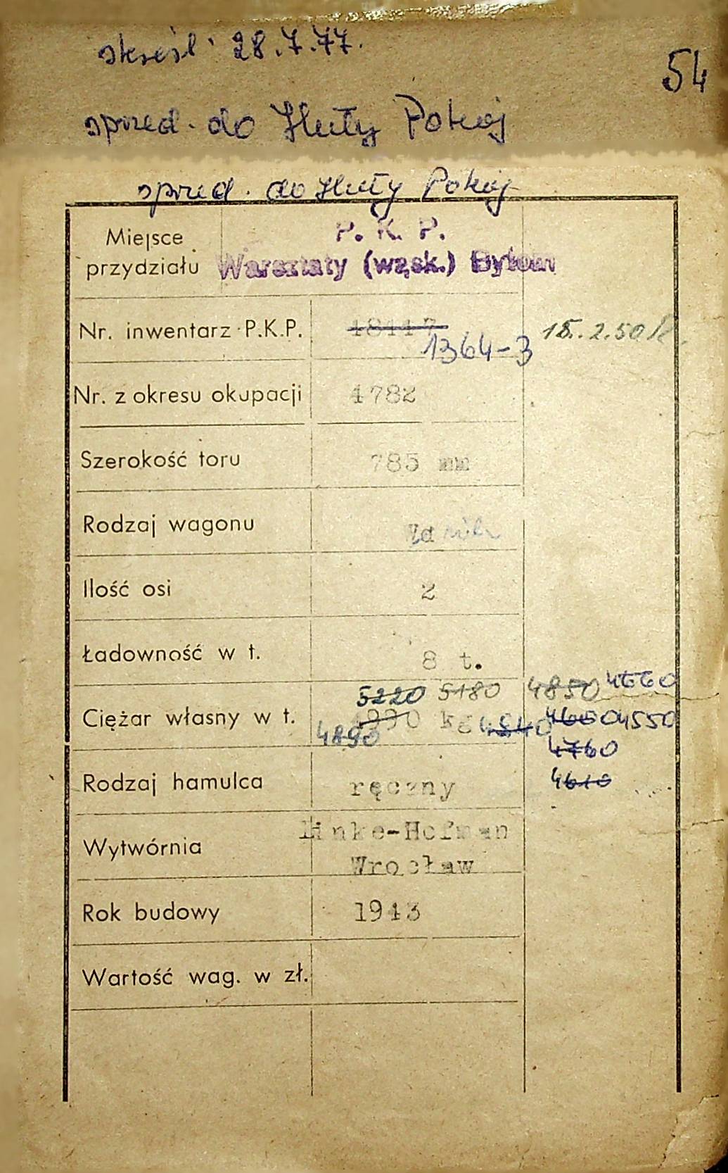 Karta wagonu Górnośląskich Kolei Wąskotorowych |