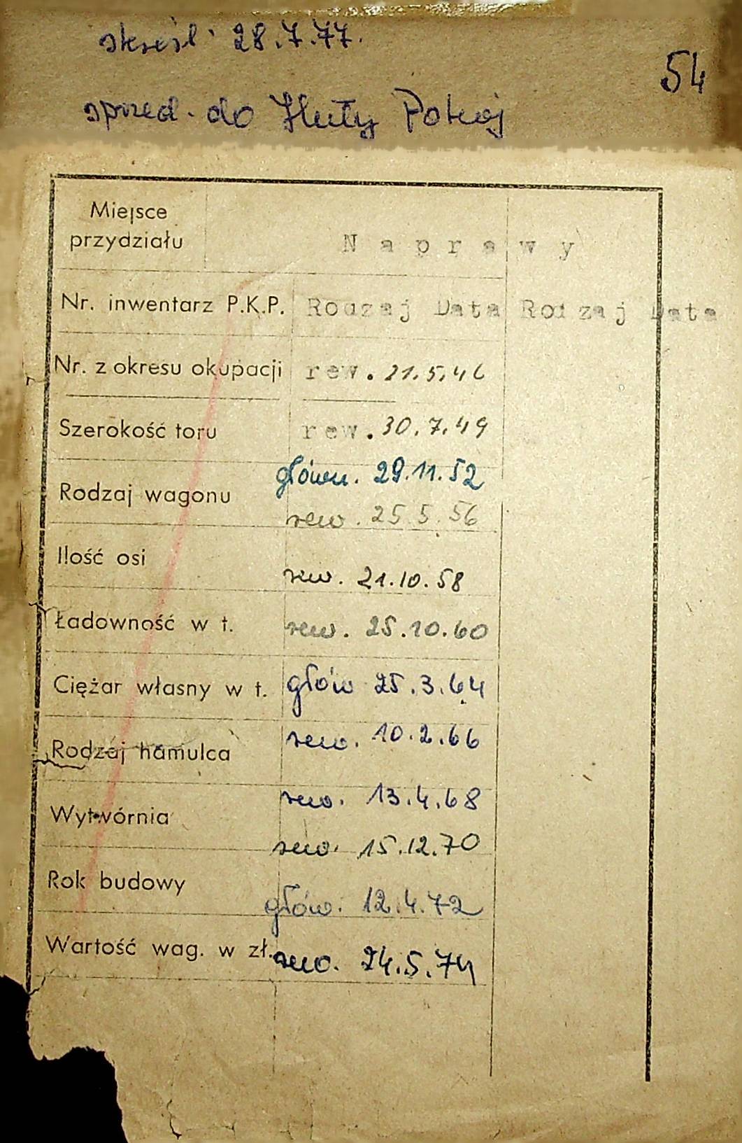 Karta wagonu Górnośląskich Kolei Wąskotorowych |
