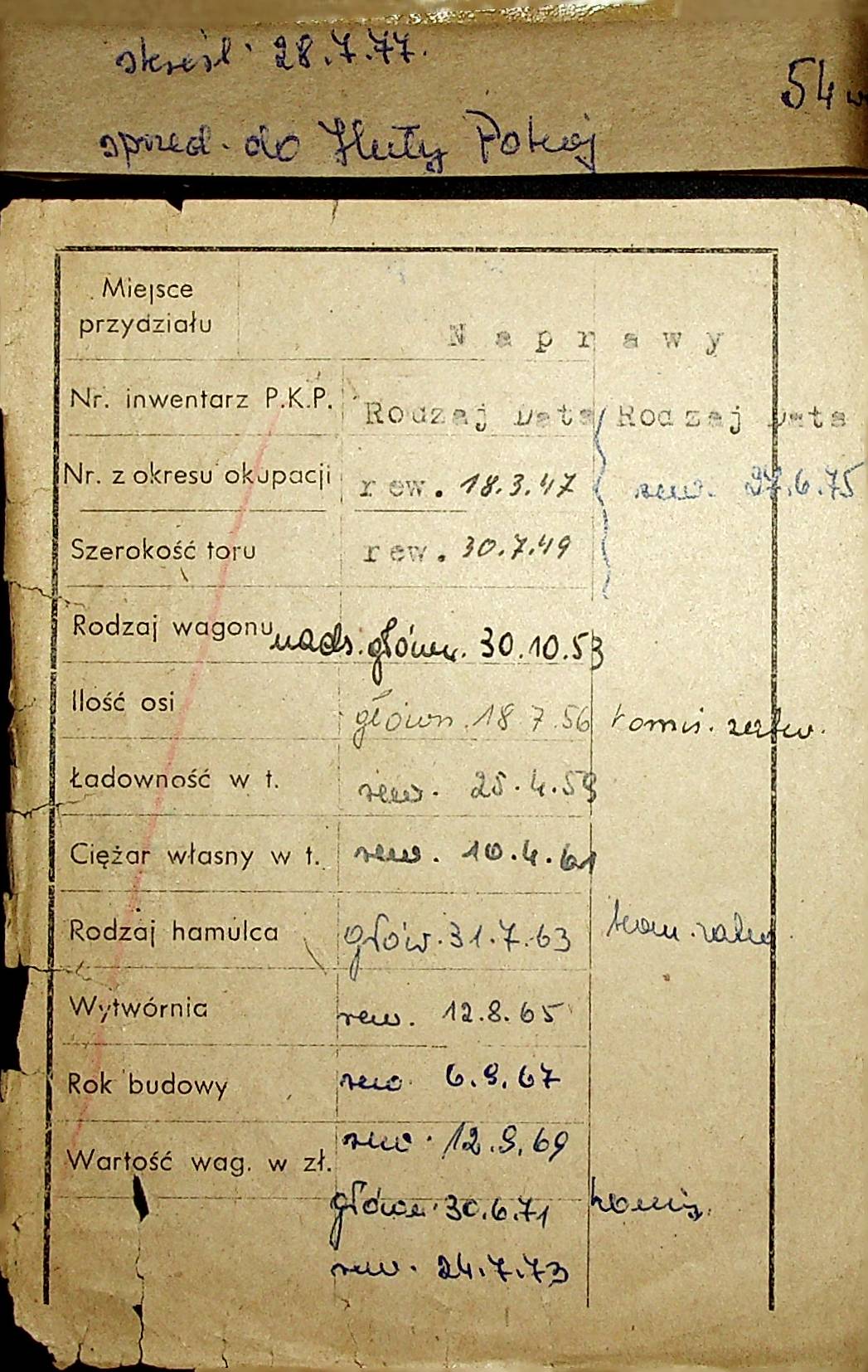 Karta wagonu Górnośląskich Kolei Wąskotorowych |