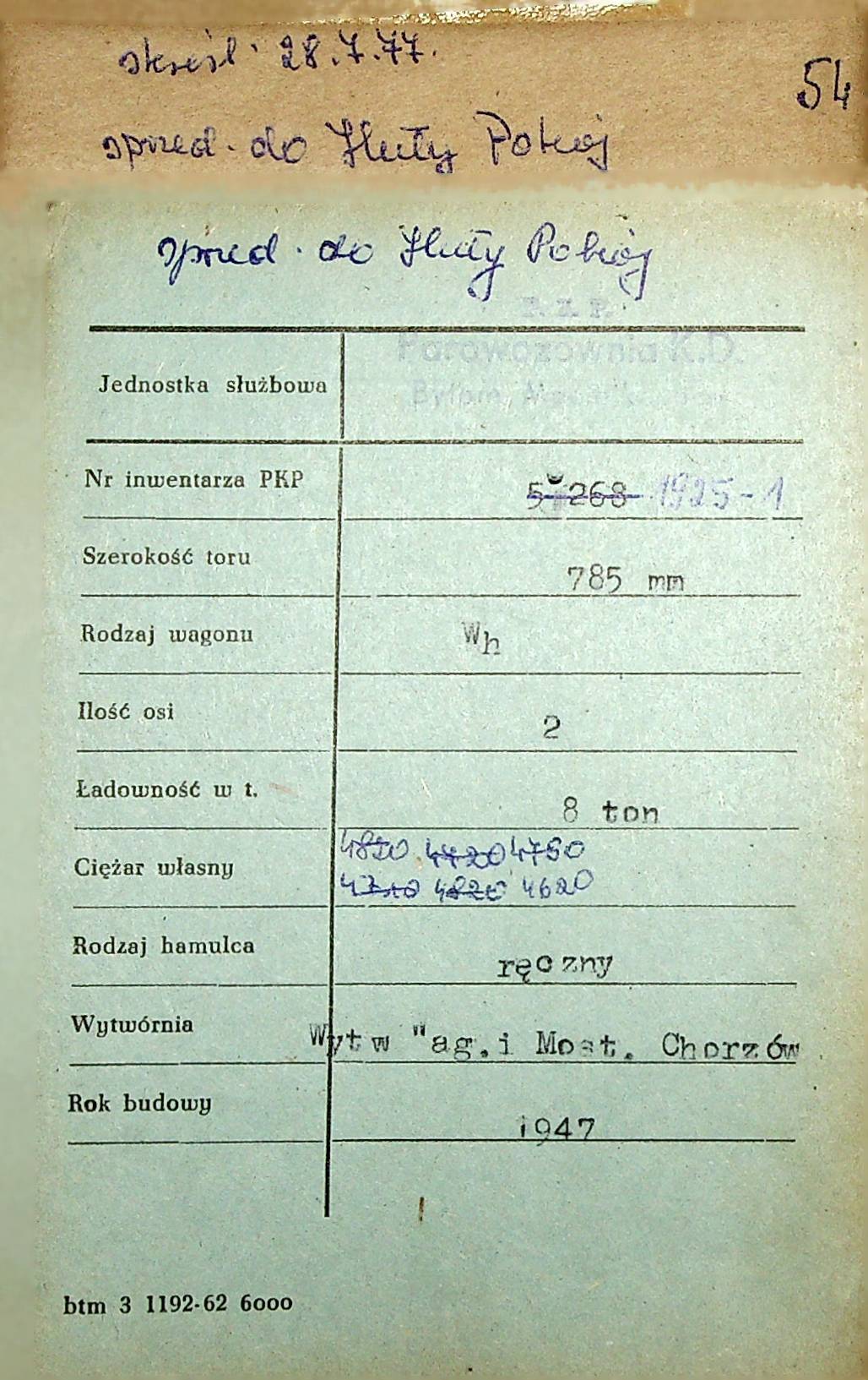 Karta wagonu Górnośląskich Kolei Wąskotorowych |