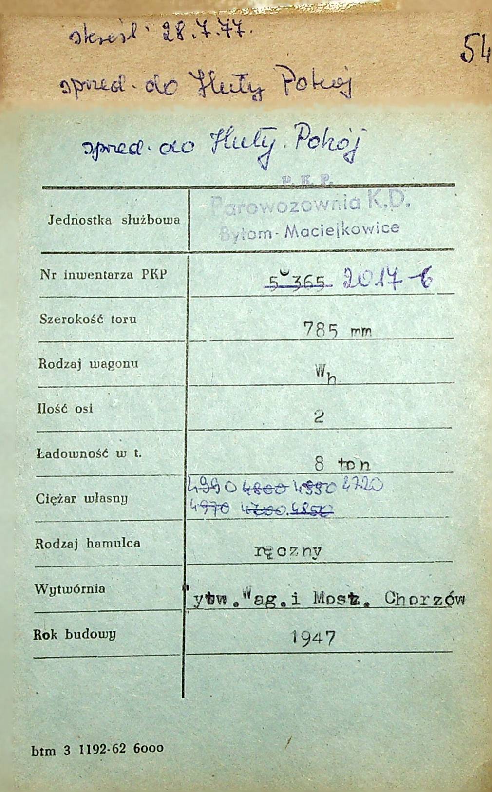 Karta wagonu Górnośląskich Kolei Wąskotorowych |