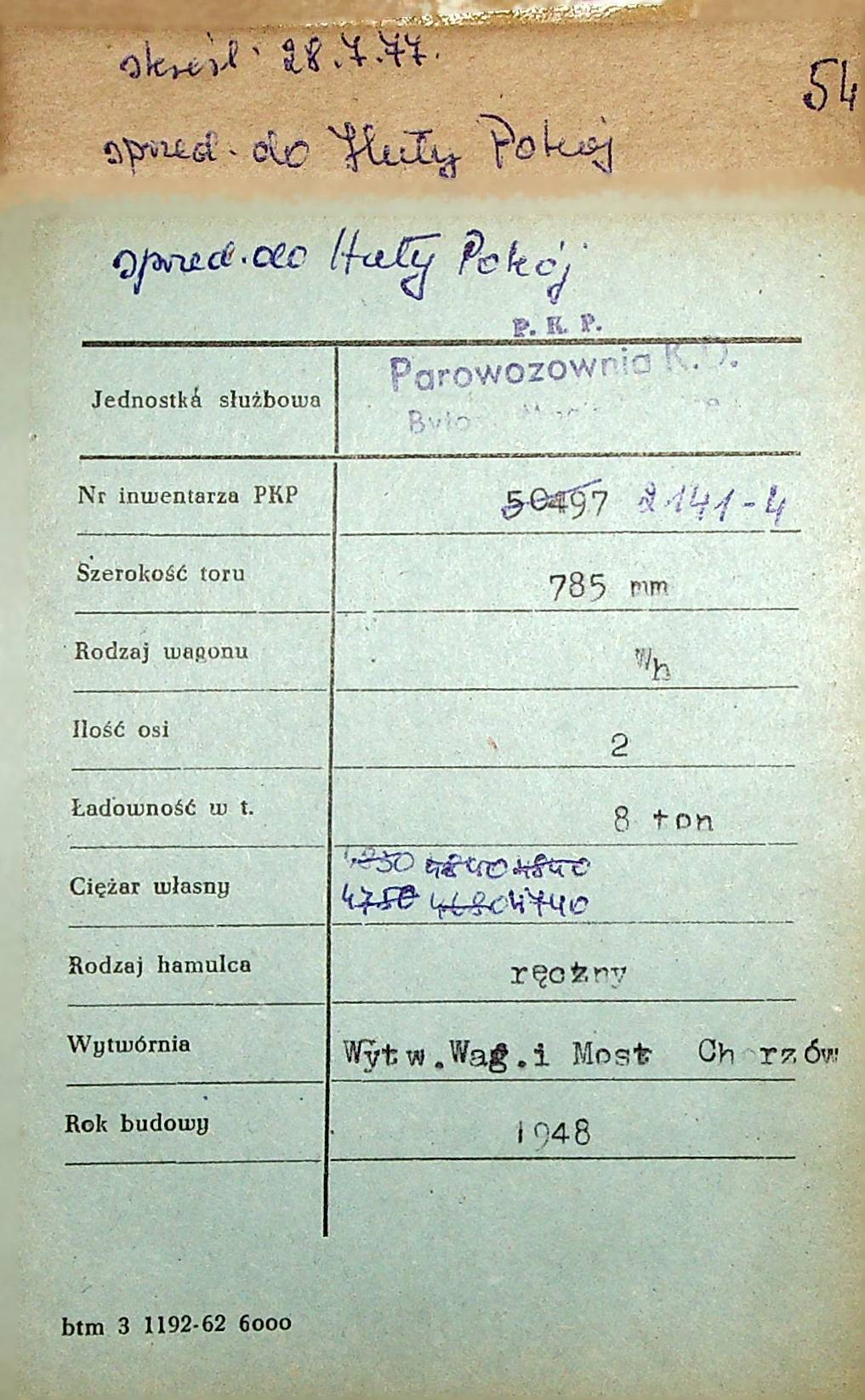 Karta wagonu Górnośląskich Kolei Wąskotorowych |