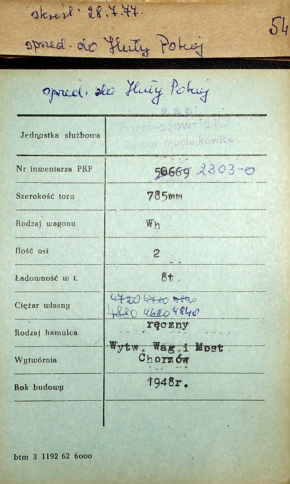 Karta wagonu Górnośląskich Kolei Wąskotorowych |