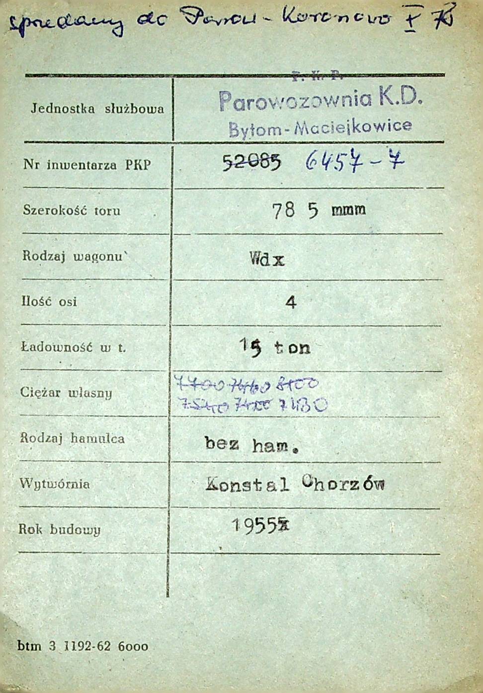 Karta wagonu Górnośląskich Kolei Wąskotorowych |