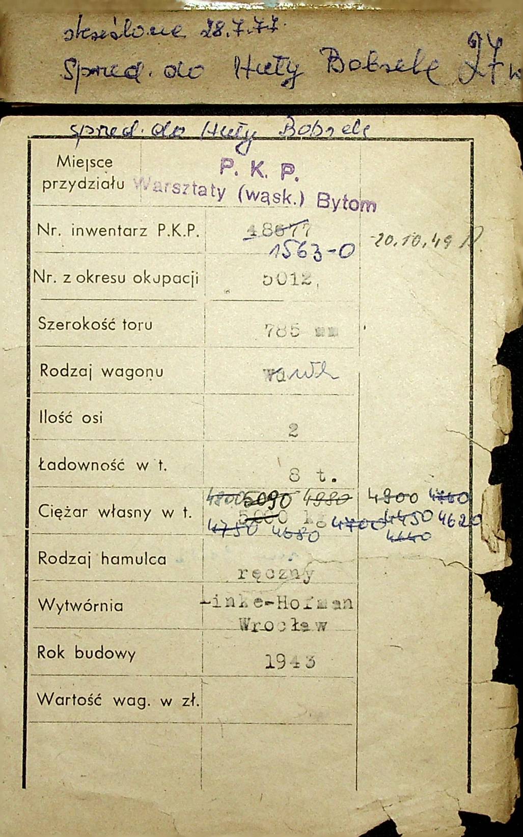 Karta wagonu Górnośląskich Kolei Wąskotorowych |
