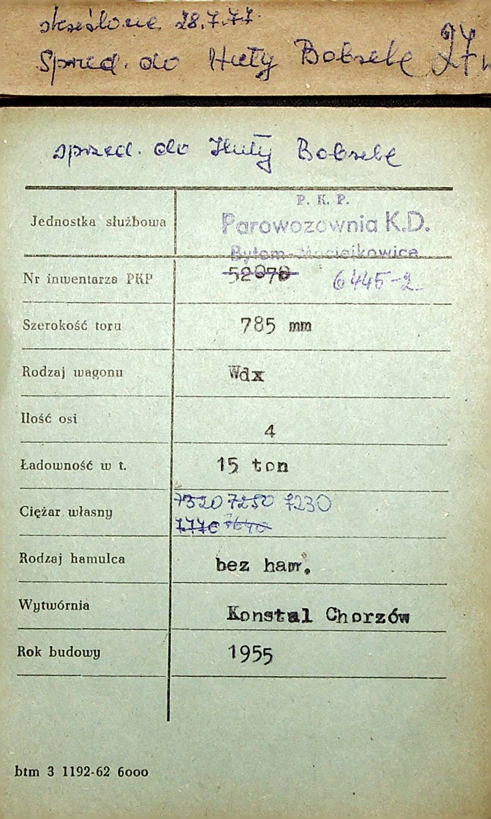Karta wagonu Górnośląskich Kolei Wąskotorowych |