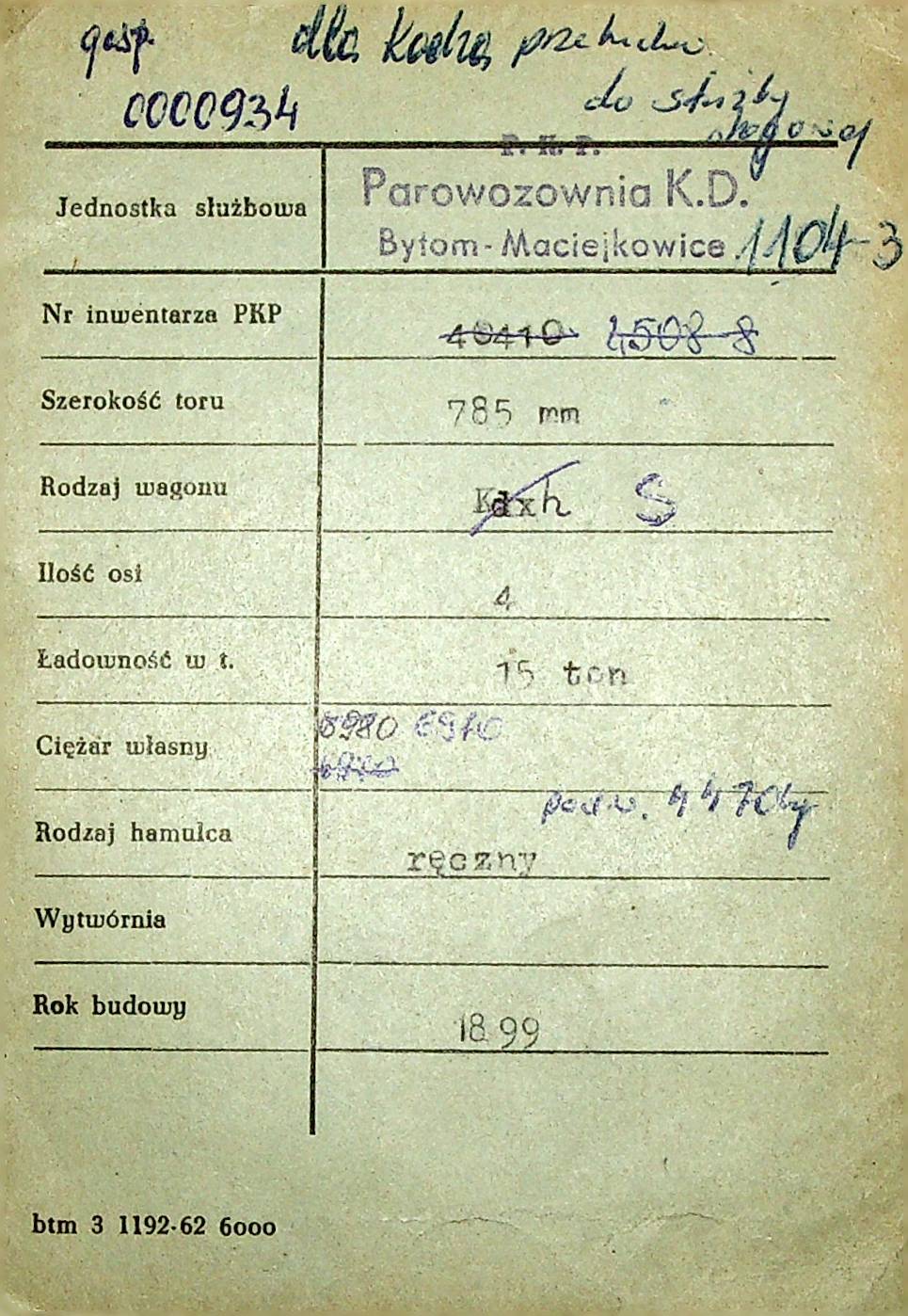 Karta wagonu Górnośląskich Kolei Wąskotorowych |