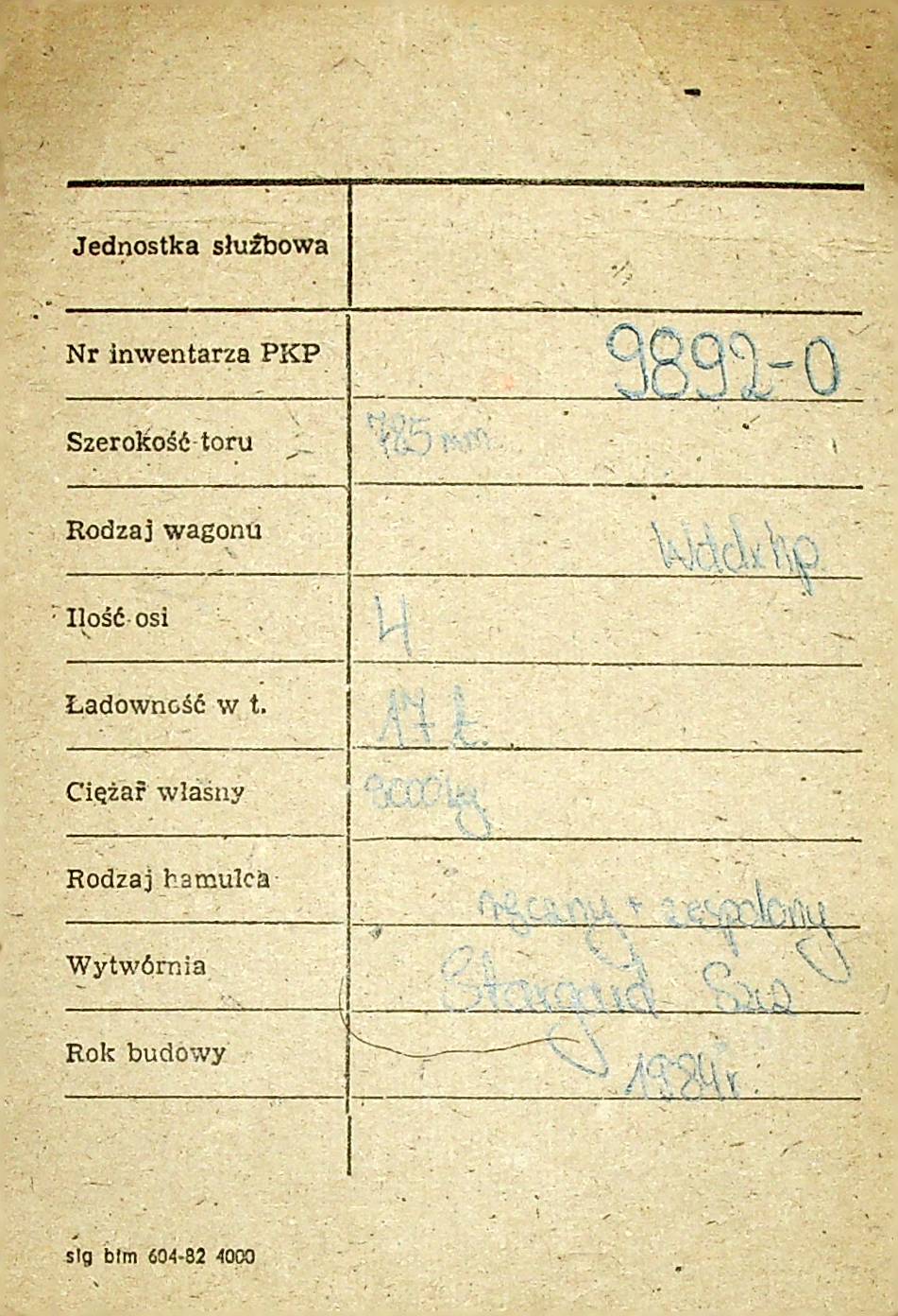 Karta wagonu Górnośląskich Kolei Wąskotorowych |
