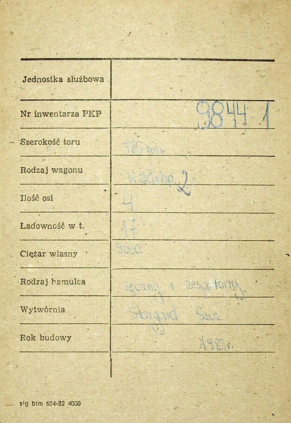 Karta wagonu Górnośląskich Kolei Wąskotorowych |