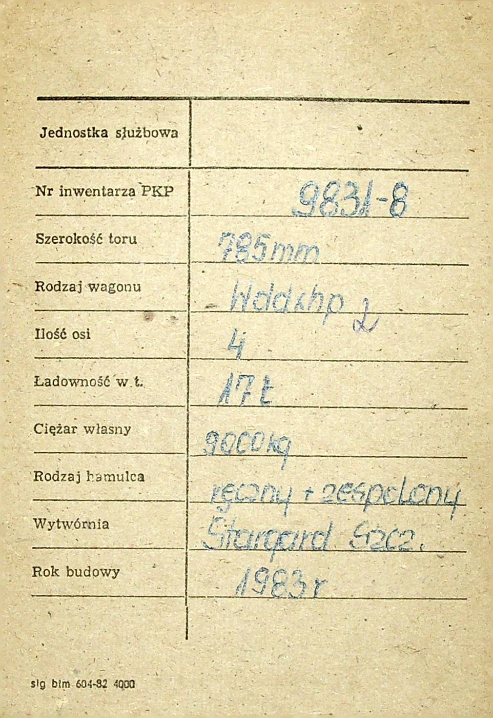Karta wagonu Górnośląskich Kolei Wąskotorowych |