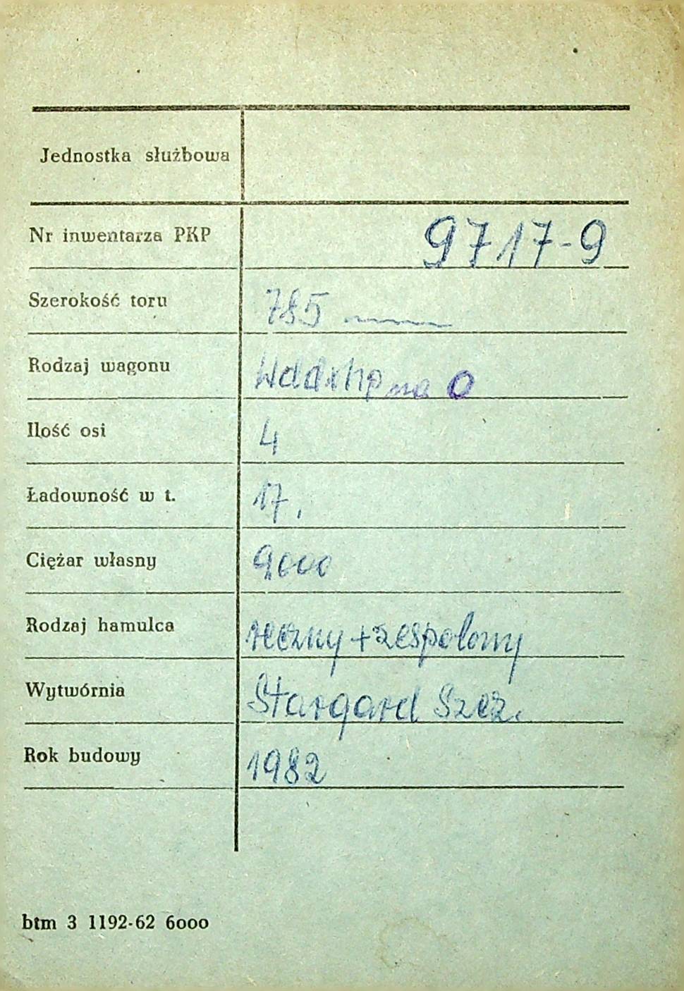 Karta wagonu Górnośląskich Kolei Wąskotorowych |