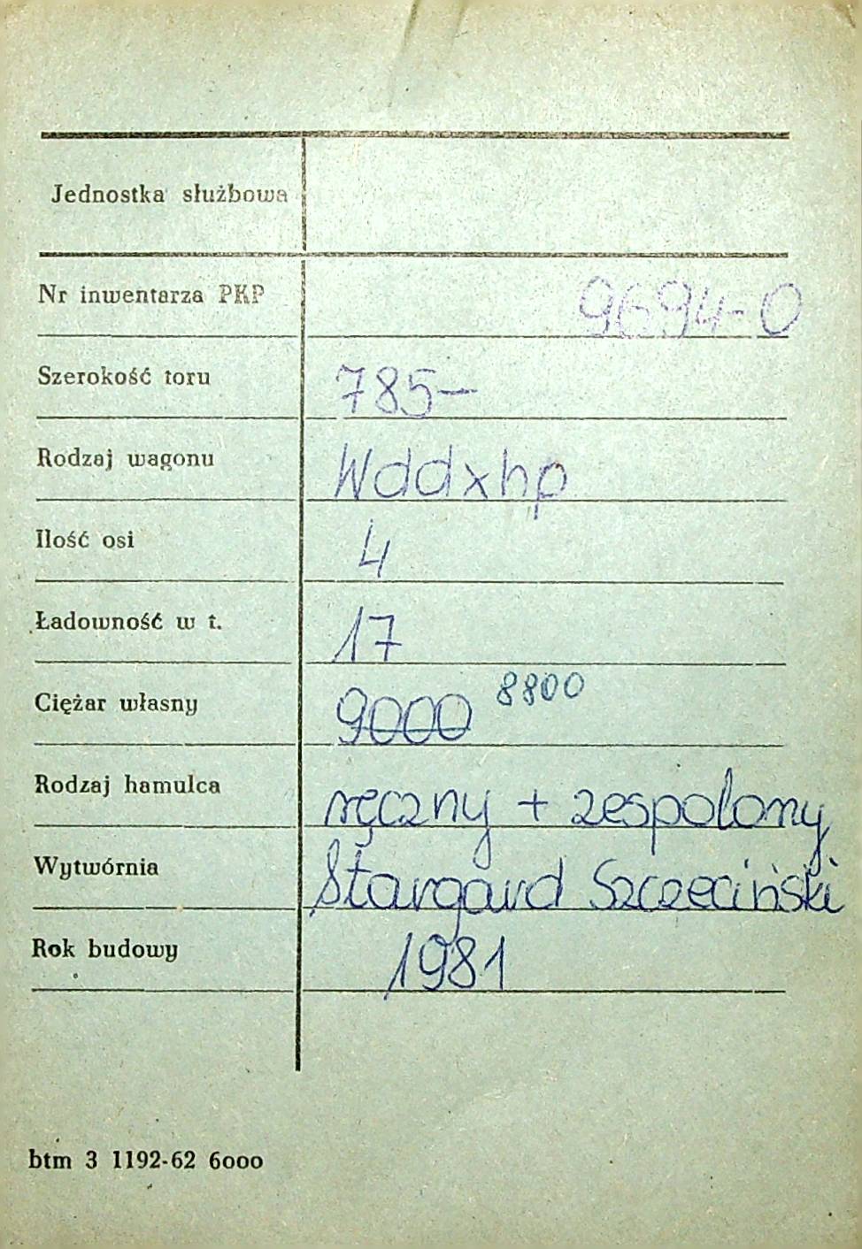 Karta wagonu Górnośląskich Kolei Wąskotorowych |