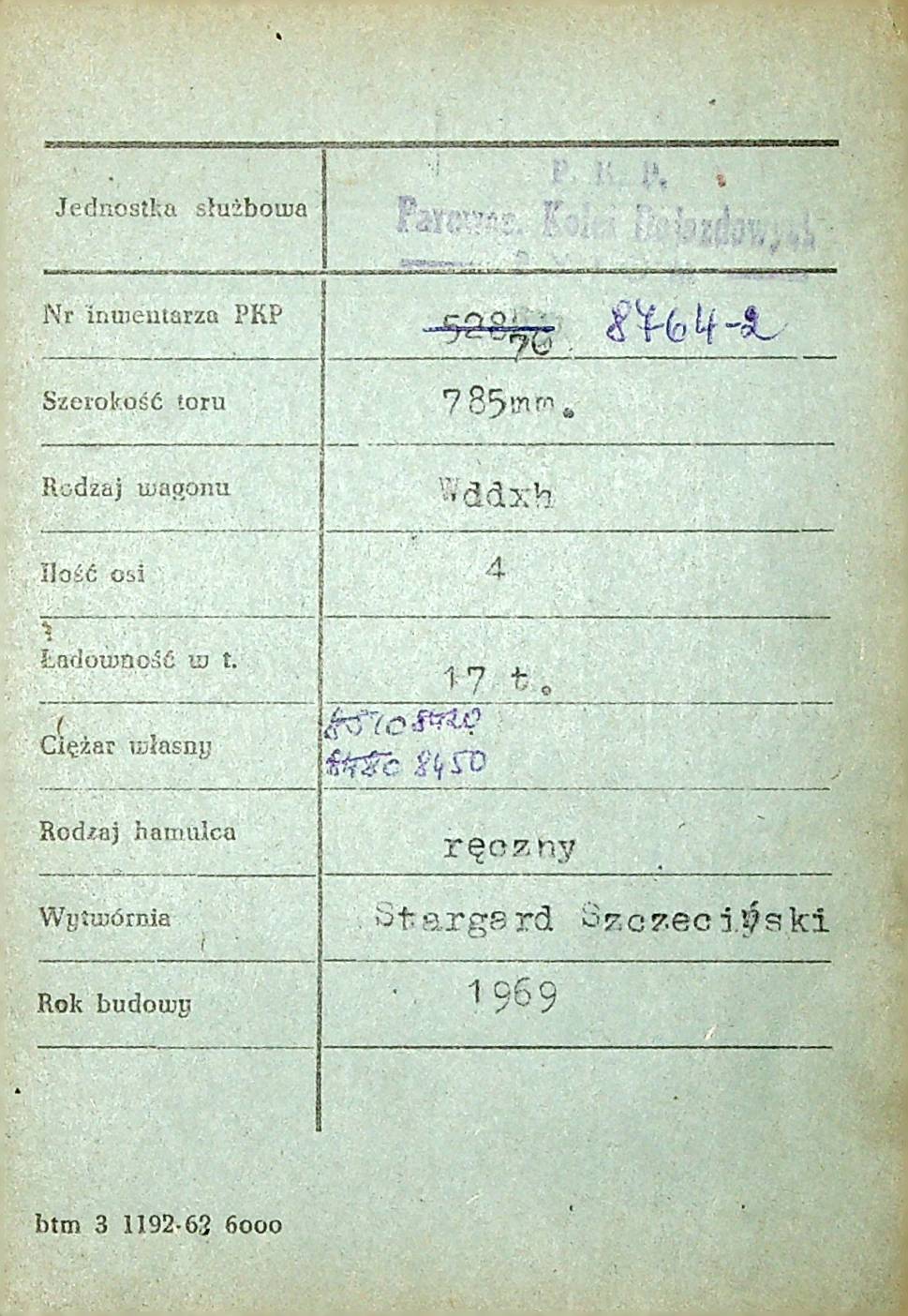 Karta wagonu Górnośląskich Kolei Wąskotorowych |