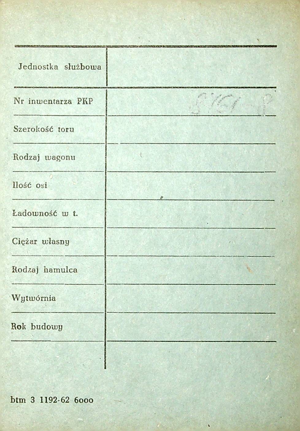 Karta wagonu Górnośląskich Kolei Wąskotorowych |