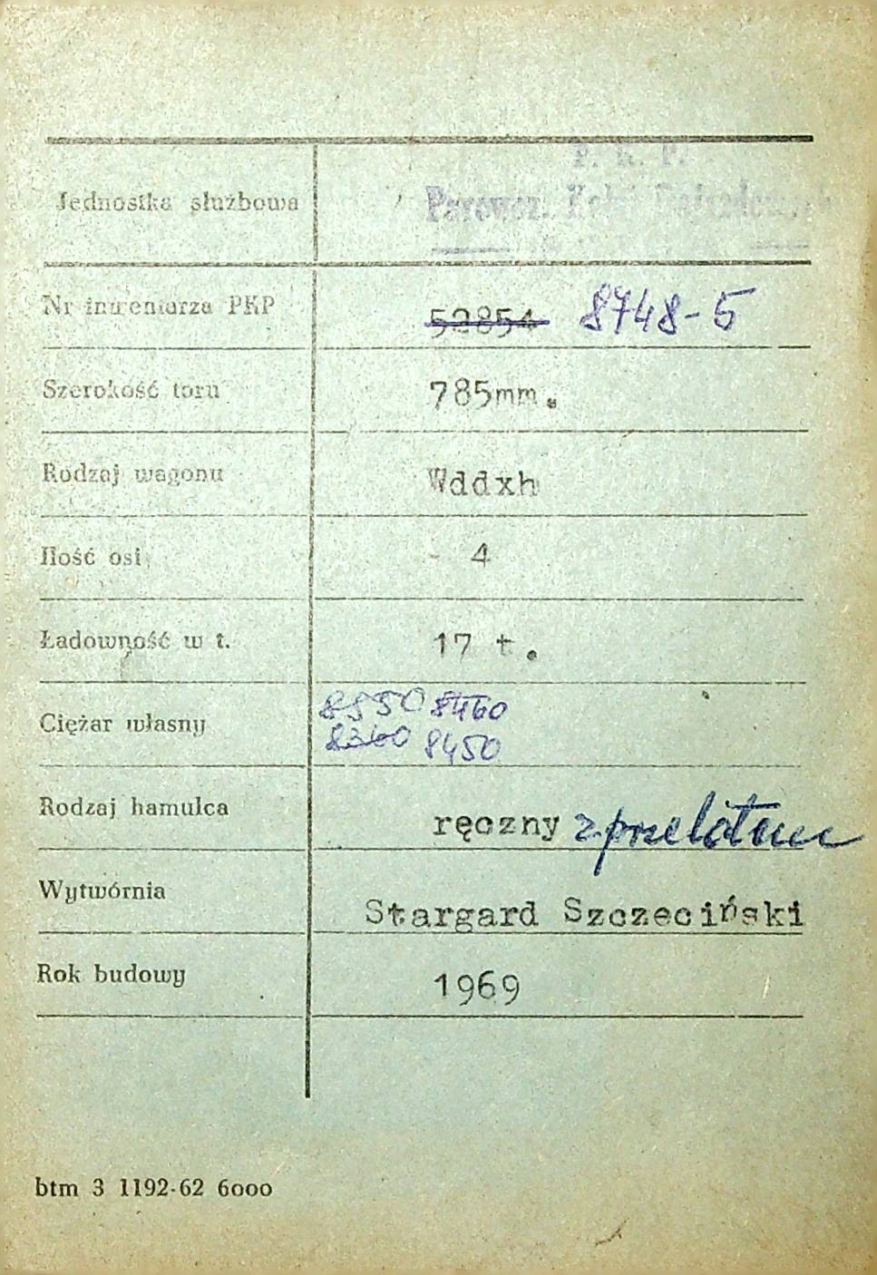 Karta wagonu Górnośląskich Kolei Wąskotorowych |