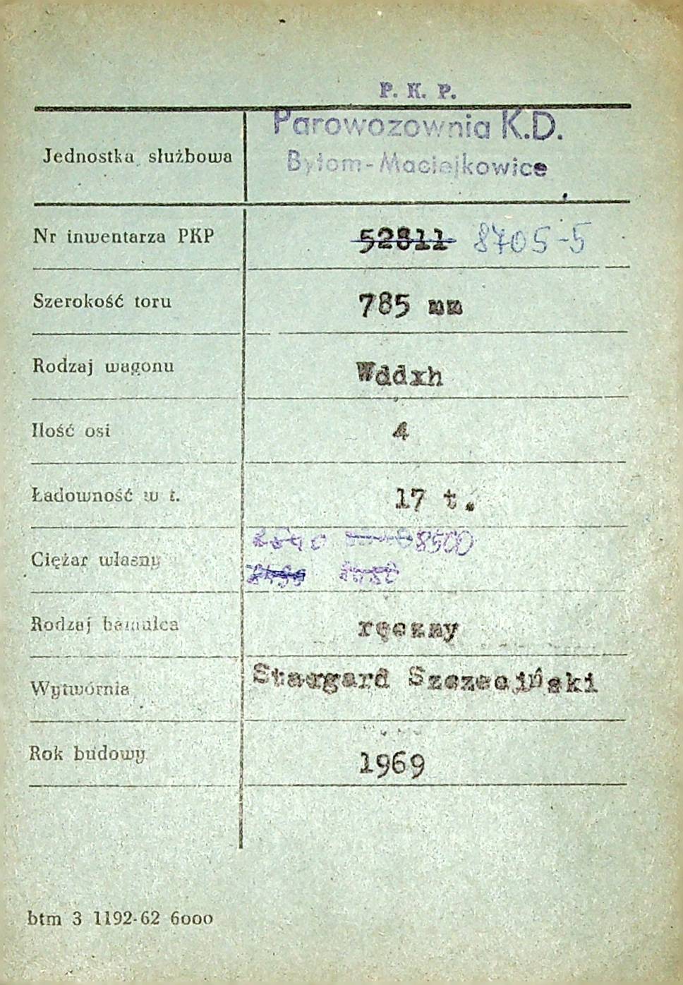 Karta wagonu Górnośląskich Kolei Wąskotorowych |