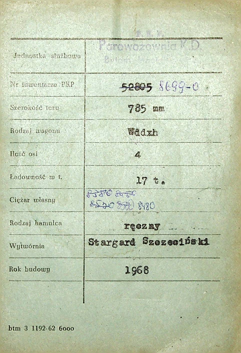 Karta wagonu Górnośląskich Kolei Wąskotorowych |