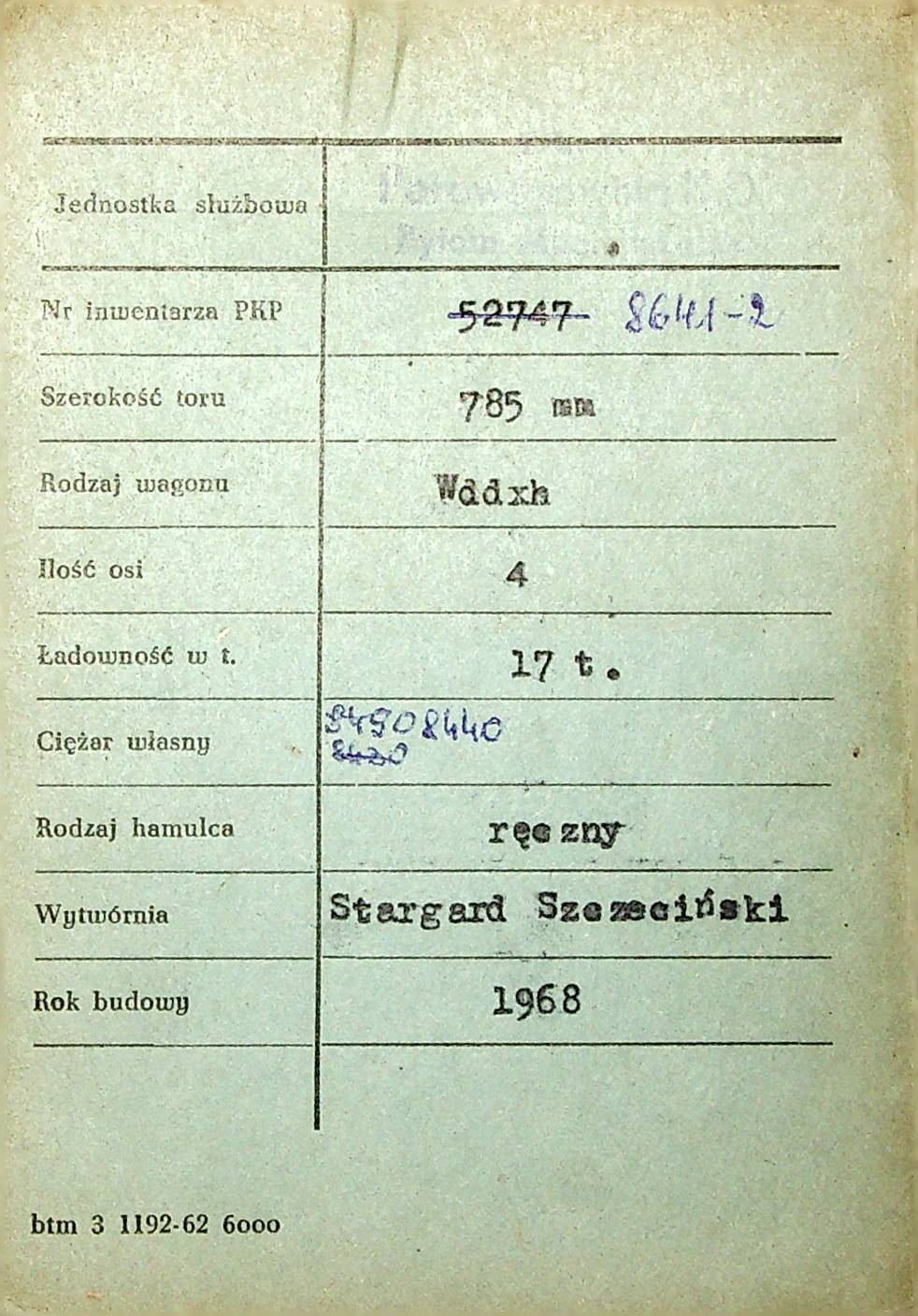 Karta wagonu Górnośląskich Kolei Wąskotorowych |