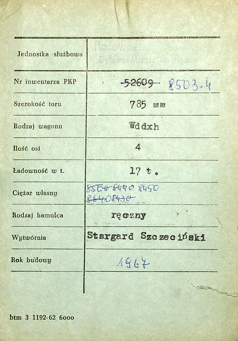 Karta wagonu Górnośląskich Kolei Wąskotorowych |