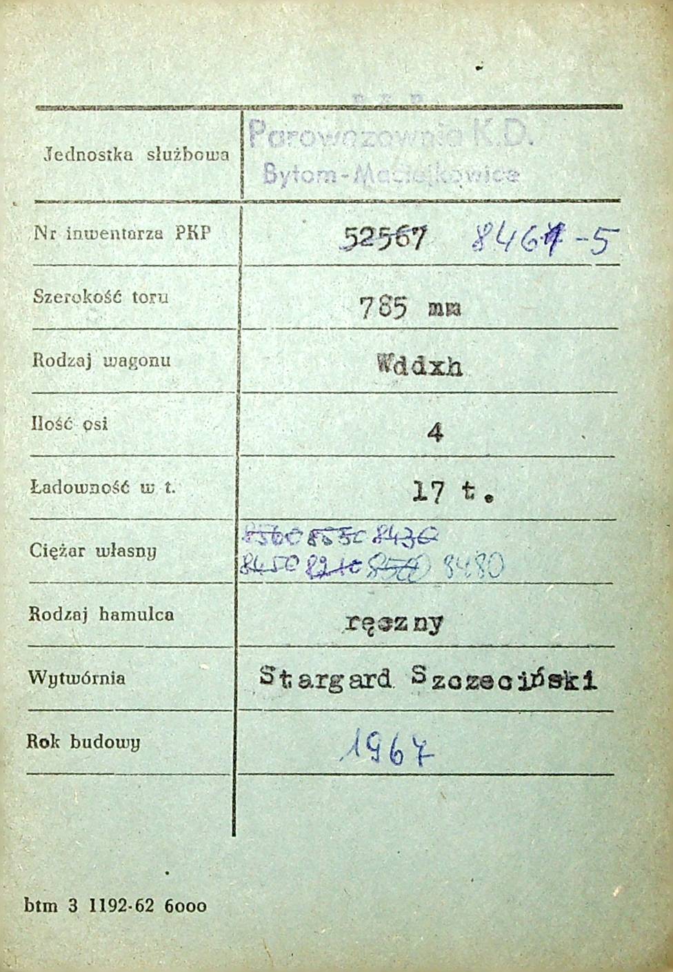 Karta wagonu Górnośląskich Kolei Wąskotorowych |