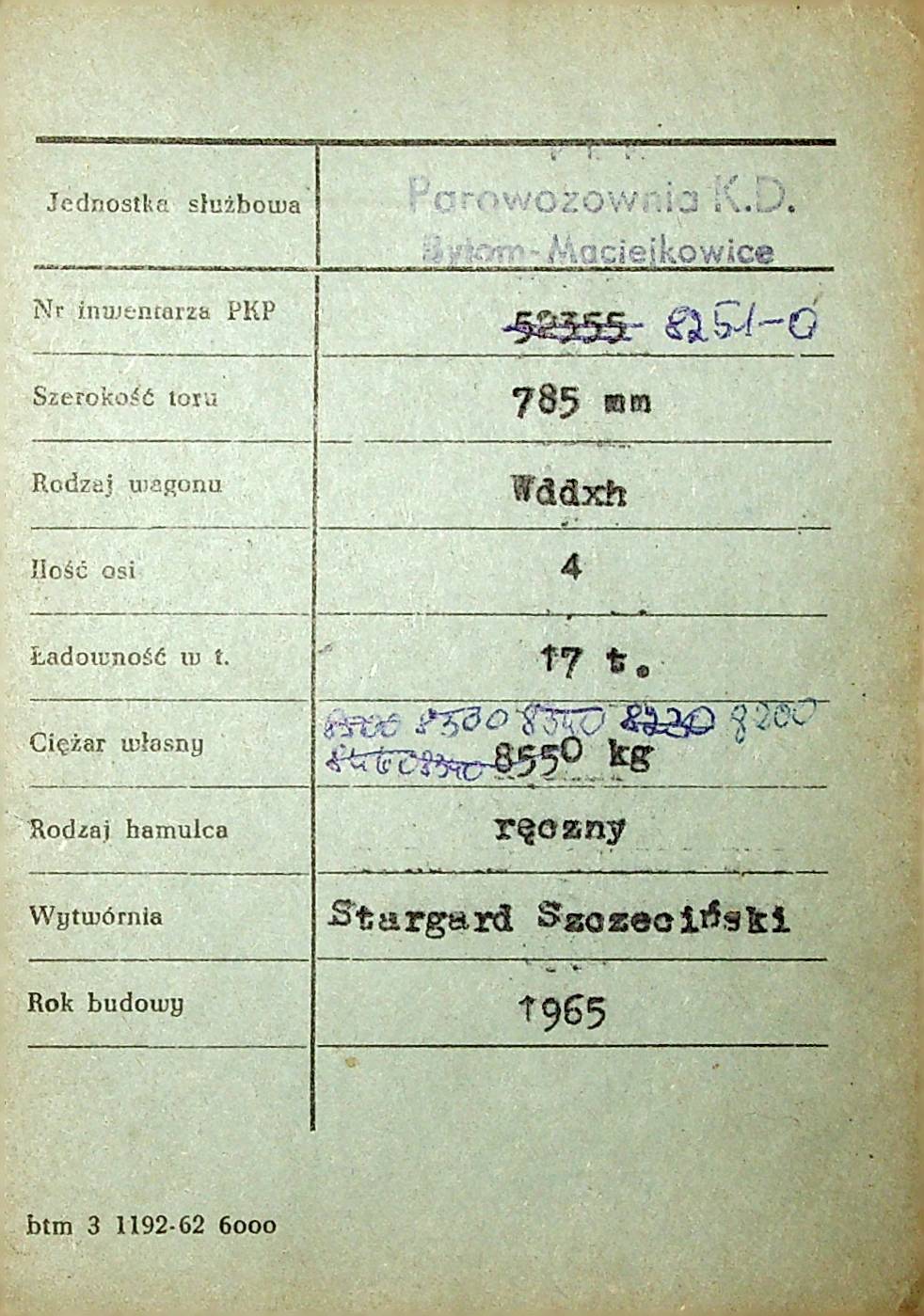 Karta wagonu Górnośląskich Kolei Wąskotorowych |