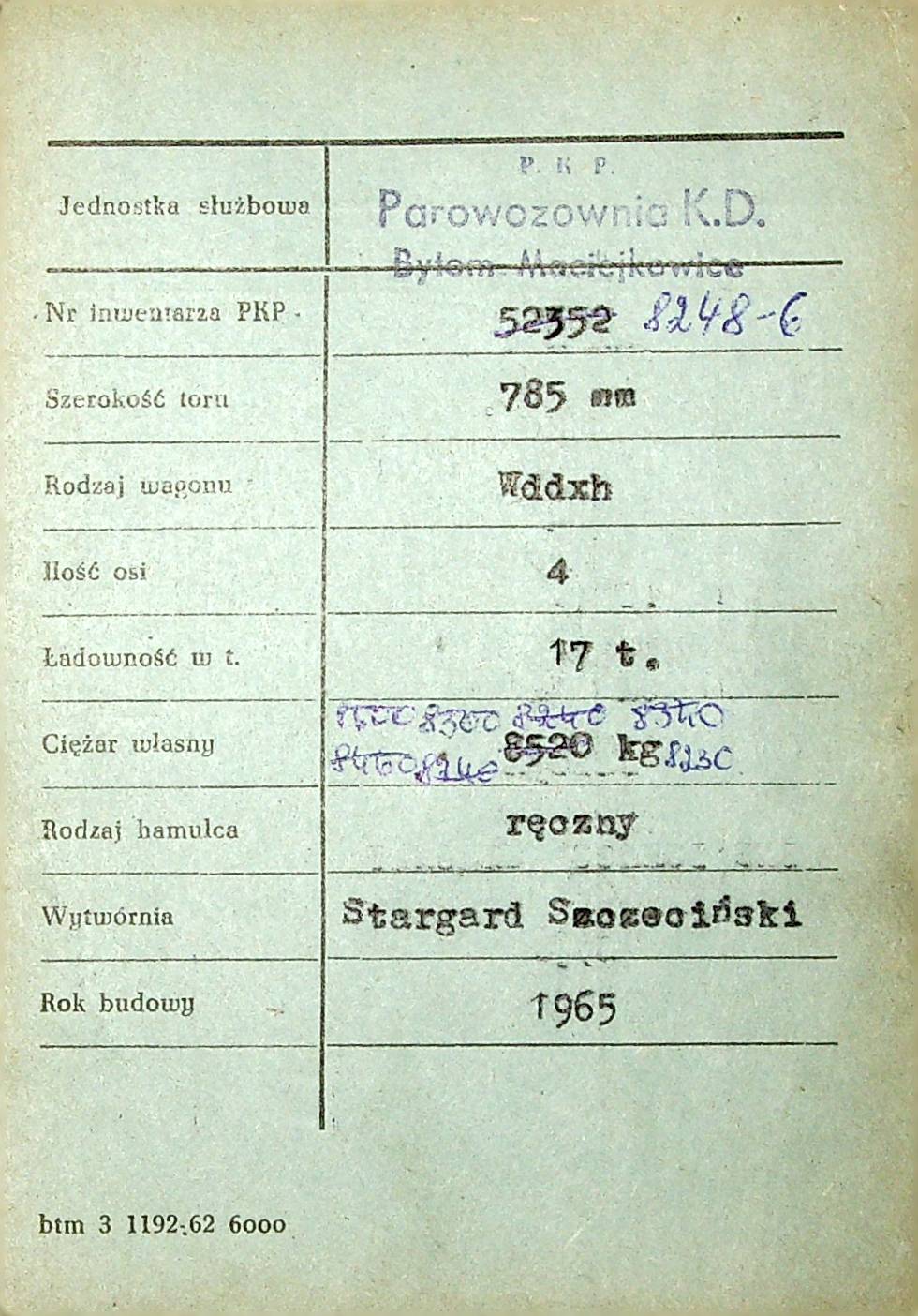 Karta wagonu Górnośląskich Kolei Wąskotorowych |