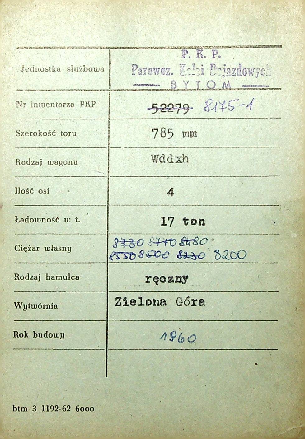 Karta wagonu Górnośląskich Kolei Wąskotorowych |