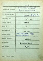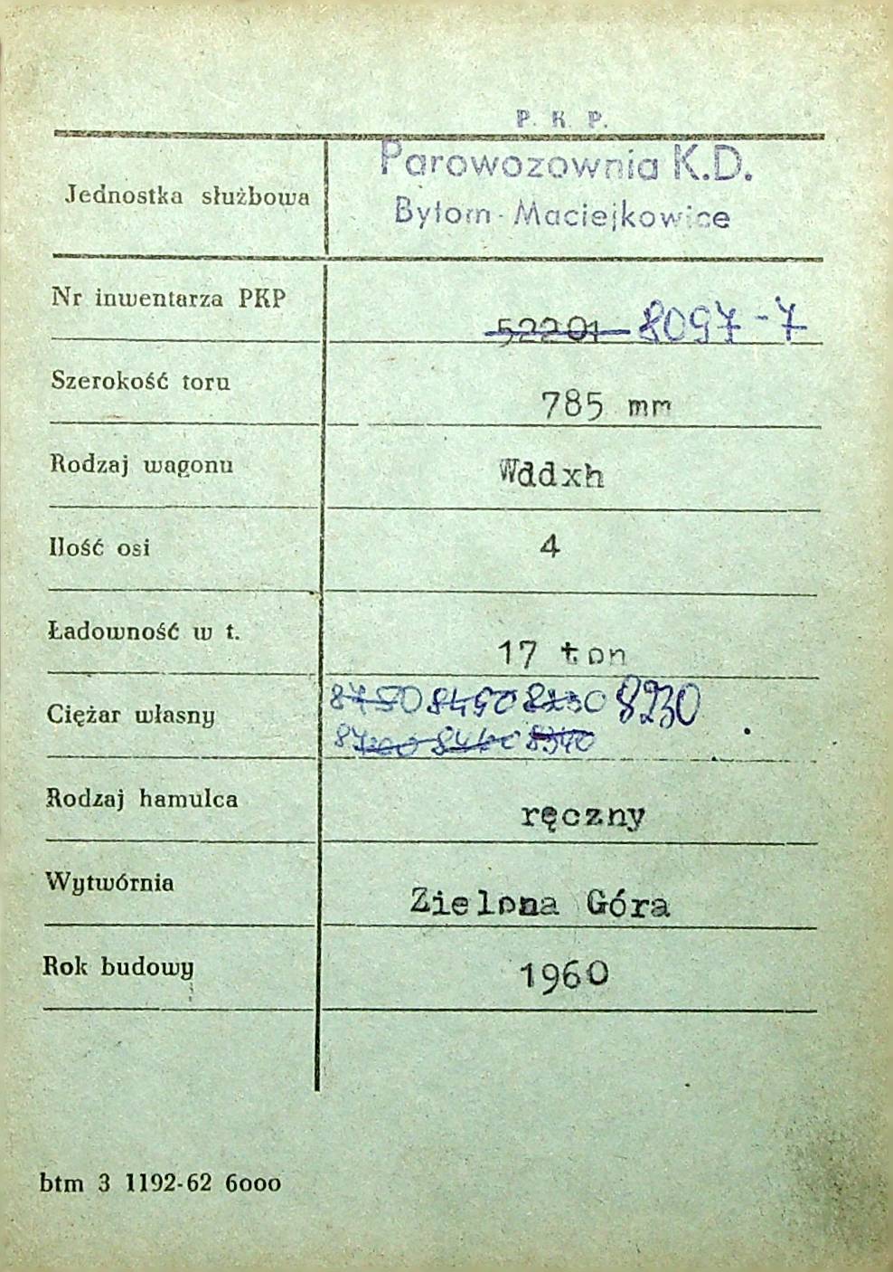Karta wagonu Górnośląskich Kolei Wąskotorowych |