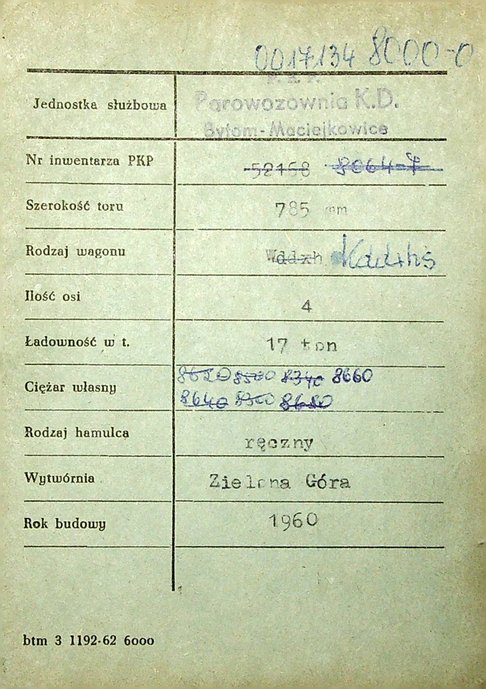 Karta wagonu Górnośląskich Kolei Wąskotorowych |